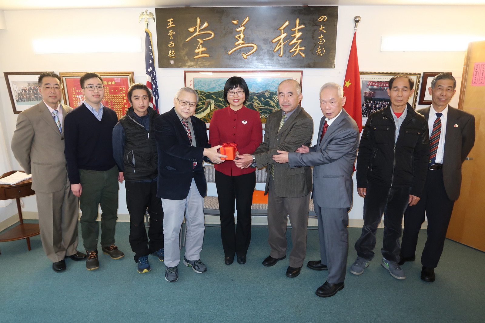 (前排左至右)顧問陳抗建,主席陳國慶,中領館副總領事鄒永紅